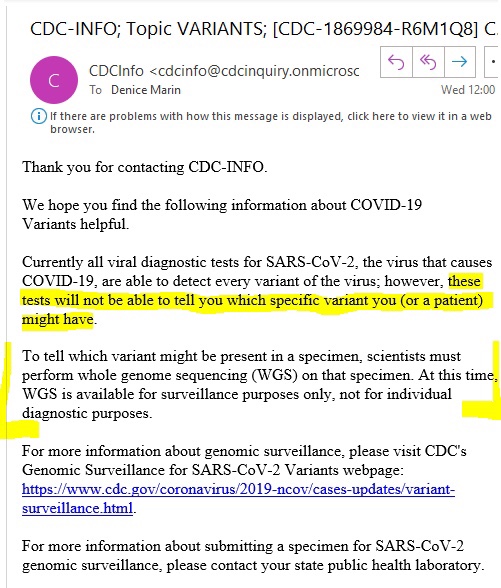 Publicado el 09 Ago, PM09 Ago, PM por J HR Silviu «Silview» Costinescu – 5 de Agosto de 2021 I emailed the CDC to ask them how they are verifying what variant is dominant. This was their answer. Thoughts?@LiamSchubel @nia3in @btysonmd @drdavidsamadi @drsimonegold @mercola @DrTessaT pic.twitter.com/AAUokFmue6— Dnice4Jesus (@DeniceMarin) July 30, 2021 FUENTE 👉 https://silview.media/2021/08/05/cdc-admitted-they-have-no-delta-variant-test-and-somehow-its-not-viral-yet/ Q-Anons España en Telegram 👉 https://t.me/QAnons_Espana Comparte esto: Compartir en X (Se abre en una ventana nueva) X Comparte en Facebook (Se abre en una ventana nueva) Facebook Más Compartir en Telegram (Se abre en una ventana nueva) Telegram Me gusta Cargando...