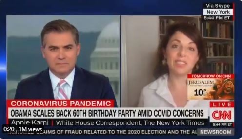 La corresponsal de la Casa Blanca del New York Times, Annie Karni, discutió la controversia en torno a la muy criticada celebración de Martha’s Vineyard de Obama, donde se le vio sin usar una máscara y usó el término multitud «sofisticada», diciendo que los invitados estaban «siguiendo todas las precauciones de seguridad».