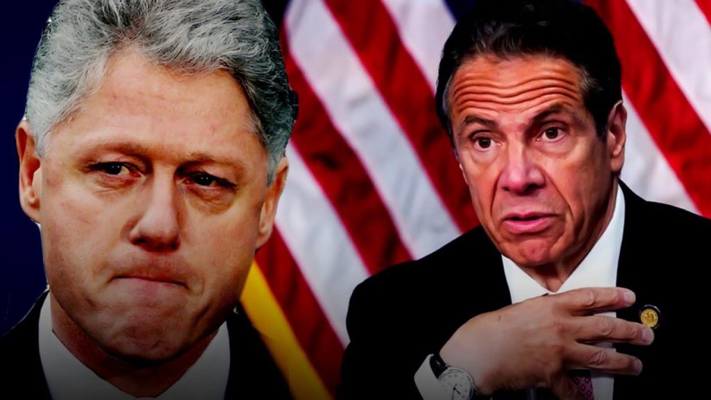 El video en la portada del artículo, muestra las respuestas sincronizadas que dieron, tanto Bill Clinton cuando cumplía su mandato como presidente de EE. UU., como el actual gobernador de Nueva York, Andrew Cuomo, a las acusaciones de comportamientos indecentes que sopesan sobre ellos. https://t.me/QAnons_Espana