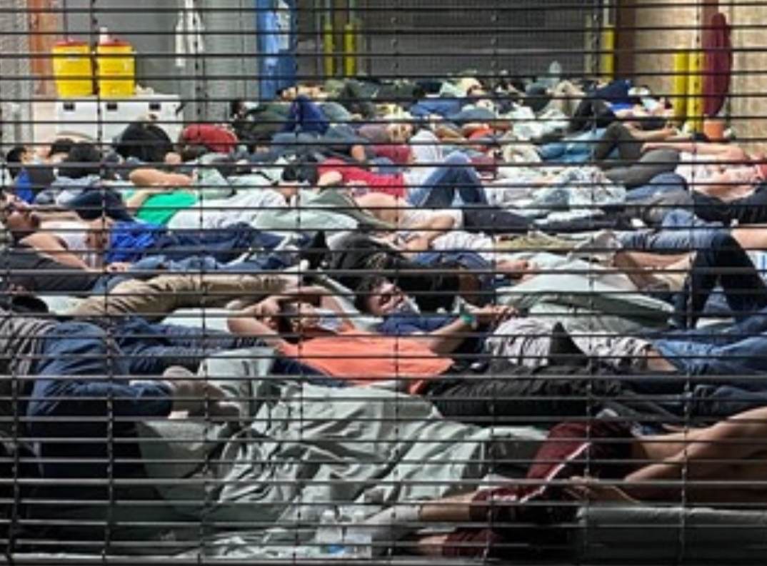 Los ilegales se empacan como sardinas en las instalaciones fronterizas.