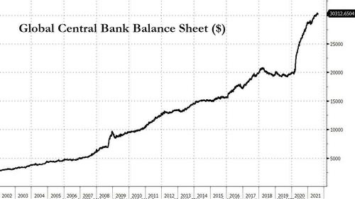 Sin embargo, al igual que las cosas parecían sombrías para nuestro mundo fiduciario alimentado por la deuda, llegó la FC y los bancos centrales con el mayor evento de patadas de botes en la historia. Desde entonces, los balances de los bancos centrales del G10 han aumentado de poco menos de 5 billones de dólares en 2007 a poco menos de 30 billones de dólares hoy en día.