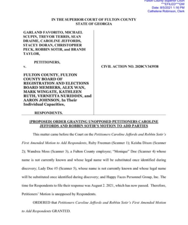 El caso electoral del condado de Fulton tiene una audiencia programada para el 20 de septiembre. Y tendrá nuevos encuestados añadidos al caso: Ruby Freeman, Keisha Dixon, Wandrea Moss y Happy Faces Personnel Group.