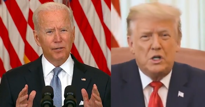 «Biden sobre Afganistán: ¡CULPA A TRUMP! Qué vergonzoso. Trump quería salir de Afganistán, pero no lo hizo durante cuatro años debido a las condiciones sobre el terreno. ¡La toma del poder de los talibanes estaba de guardia de JOE!»