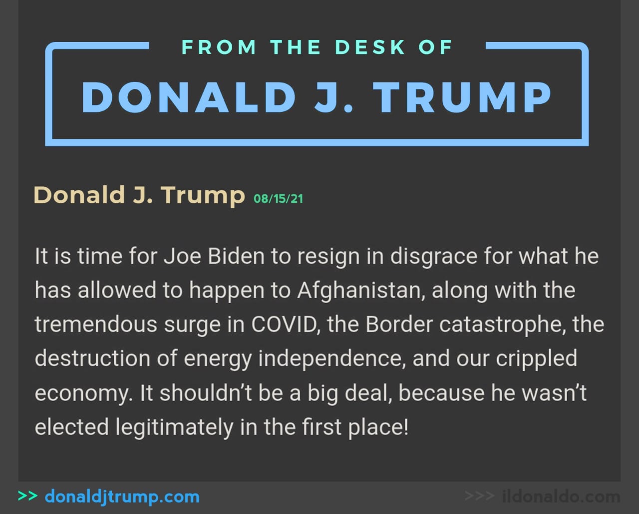 Fuente: https://dailyusa24.com/2021/08/16/unprecedented-president-trump-calls-for-joe-bidens-resignation/