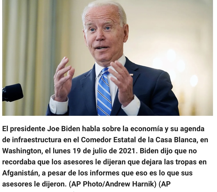 Biden le dijo además a George Stephanopoulos de ABC que la inteligencia no indicaba que el gobierno afgano colapsaría rápidamente, a pesar de los informes, eso es exactamente lo que dijo la inteligencia.