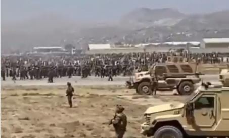 Escena caótica en el Aeropuerto Internacional de Kabul a principios de esta semana.