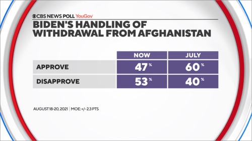 Pero el mayor problema que enfrenta Biden, y uno que no desaparecerá, es que dos tercios de los estadounidenses sienten que el presidente no tiene un plan claro para evacuar a los civiles estadounidenses de Afganistán.