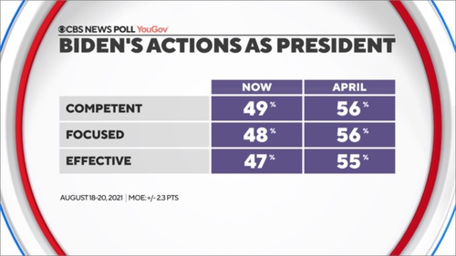 Obviamente, el catalizador de la caída de Biden en las encuestas fue su manejo de la retirada, donde principalmente los demócratas lo respaldan aquí y una caída sustancial desde julio.