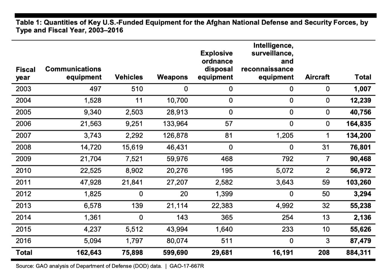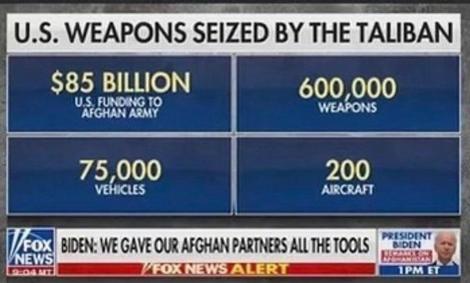 Hoy temprano publicamos una lista más completa de equipos suministrados por Estados Unidos abandonados a los talibanes por Joe Biden.