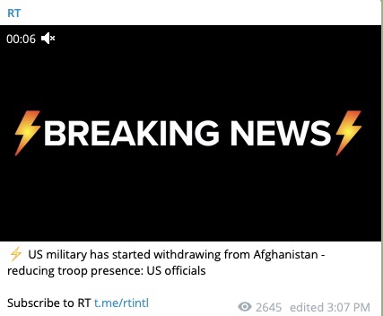 El mundo se regocija con la decisión de la administración de Biden de retirar las fuerzas militares estadounidenses según las órdenes de los talibanes, dejando a miles de estadounidenses en el terreno en Afganistán esperando la retribución de los talibanes medievales. https://t.me/QAnons_Espana