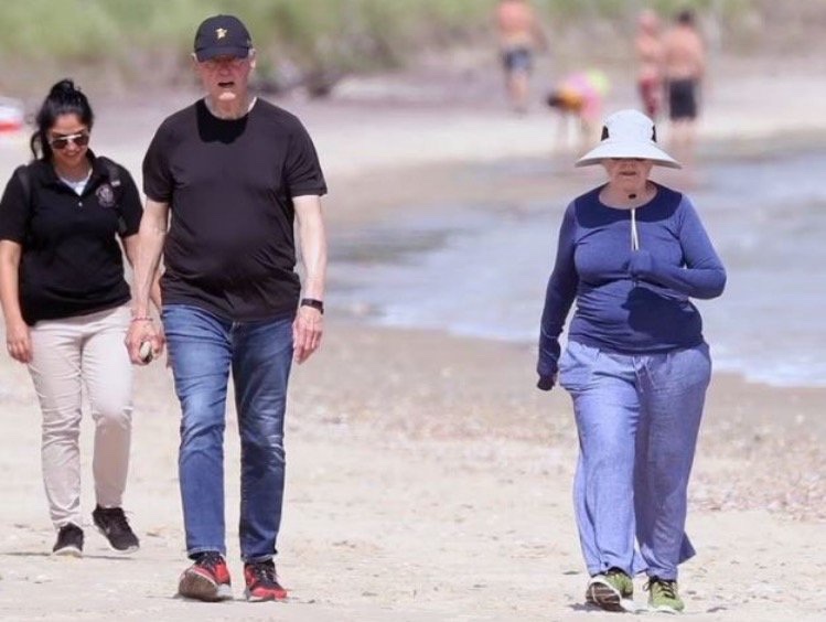 Bill y Hillary Clinton fueron vistos el martes dando un paseo por la playa en los Hamptons.