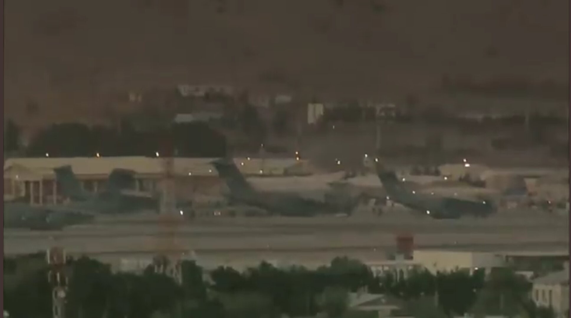 Aviones militares estadounidenses en el aeropuerto de Kabul, imagen de pantalla de archivo, 26 de agosto de 2021.