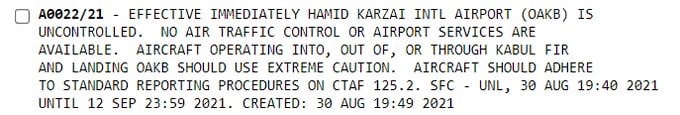 E) EFECTIVO INMEDIATAMENTE EL AEROPUERTO INTL HAMID KARZAI (OAKB) ES