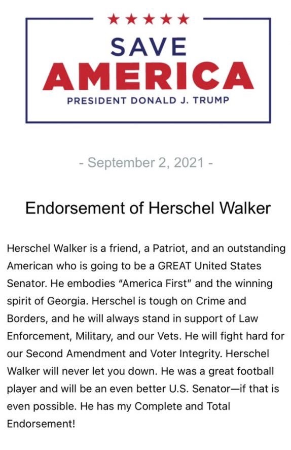 ¡Y el jueves el presidente Trump apoyó al ex gran futbolista en su carrera al Senado de Georgia!