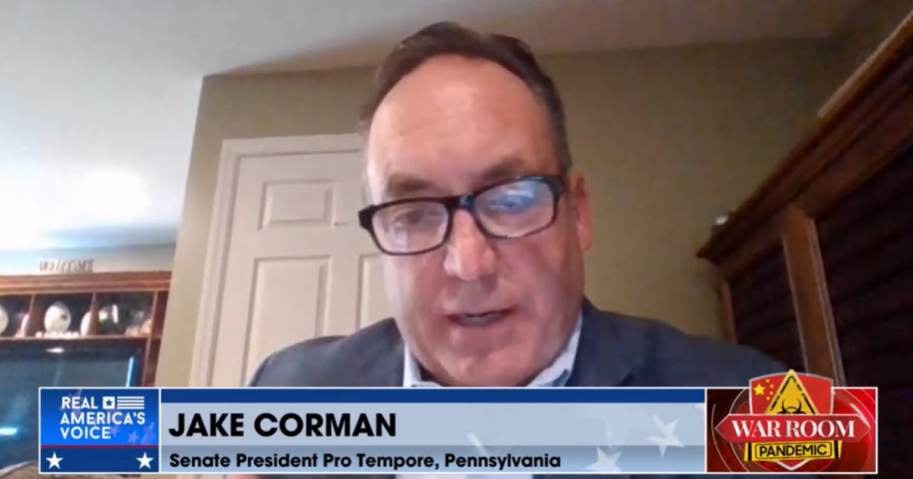 El líder del Senado de Pensilvania, Jake Corman, se unió a Steve Bannon en la Sala de Guerra el jueves por la noche.