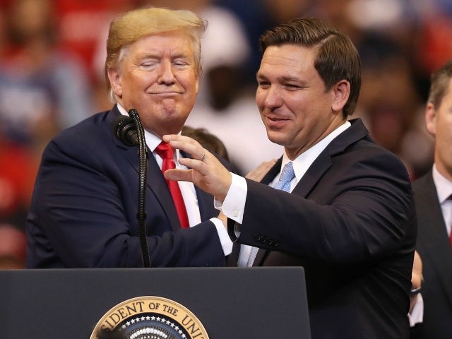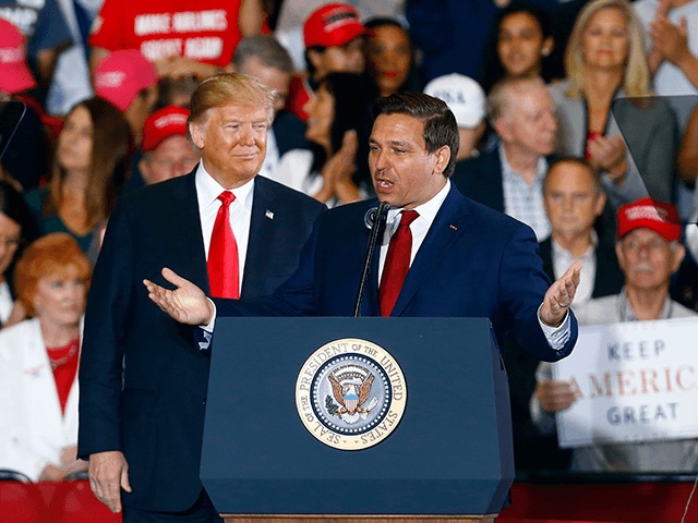 El ex presidente Donald Trump y el gobernador de Florida. Ron DeSantis (R) domina en hipotéticos escenarios de 2024, según una encuesta de Emerson College publicada esta semana.