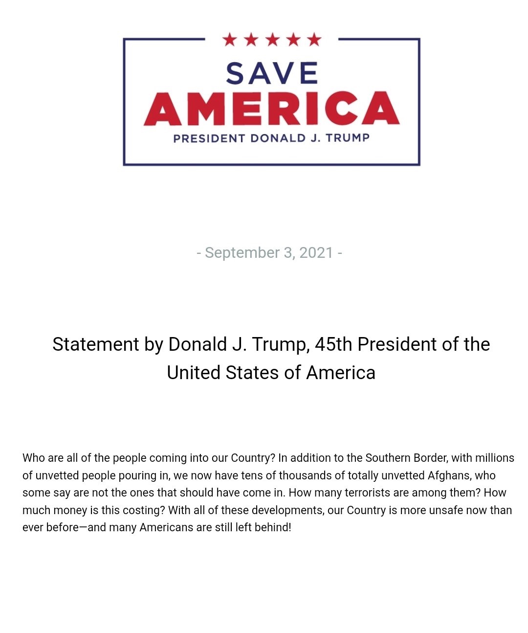 Trump emitió una declaración advirtiendo a los estadounidenses sobre la entrada de afganos no examinados a los Estados Unidos.