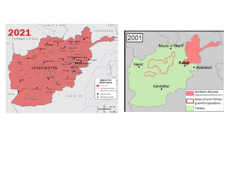 Cuando se mira hacia atrás en 2001, hace veinte años, los talibanes tenían menos territorio en Afganistán que hoy en 2021.