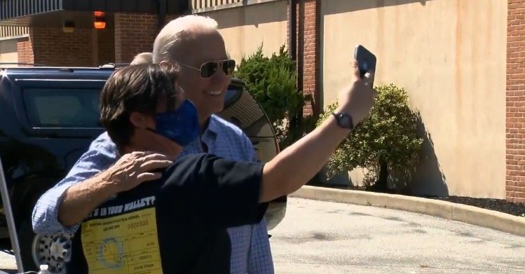 Joe Biden sonrió mientras bromeaba y se hacía selfies con miembros del sindicato en New Castle, Delaware el lunes.