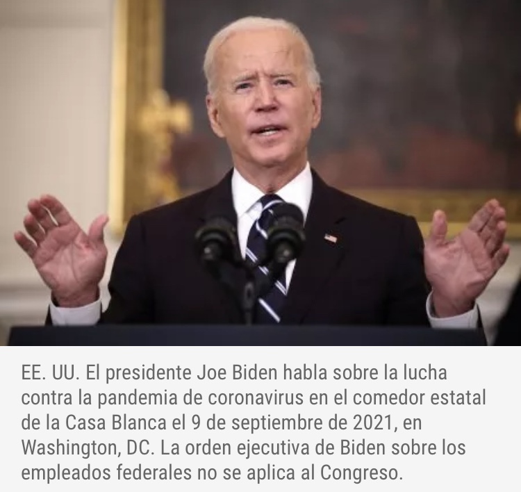 Los nuevos mandatos de vacunación del presidente Joe Biden para los empleados federales no se aplican a los miembros del Congreso o a aquellos que trabajan para el Congreso o el sistema judicial federal.