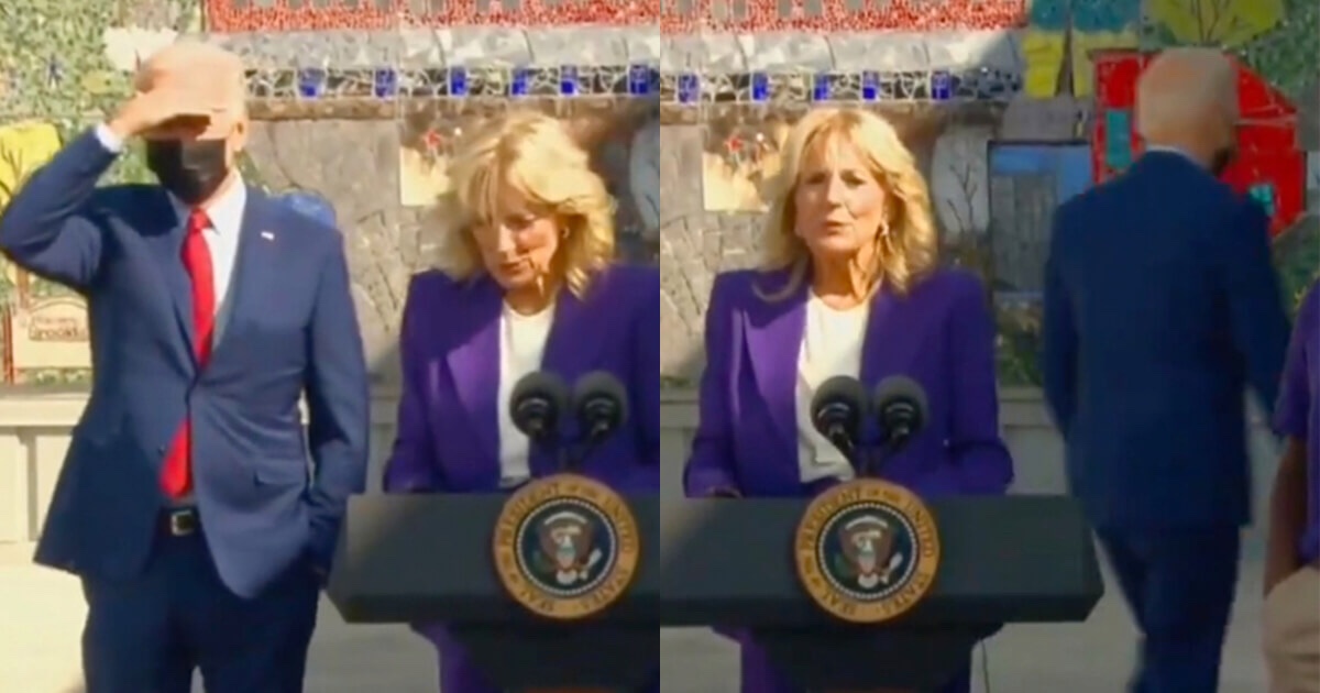 Mientras Jill Biden discutía la «mezcla de emociones» que trae cada año escolar, el presidente levantó la mano a la cara, como para cubrirse los ojos para ver algo, antes de vagar detrás de la primera dama y fuera del marco, mostraron imágenes.
