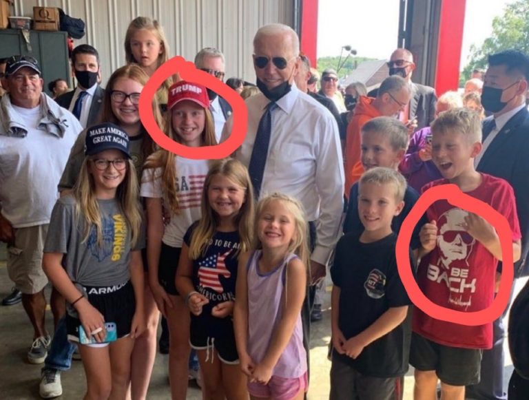 Fuente: https://usamagazinestudio.com/biden-unknowingly-poses-with-children-wearing-pro-trump-gear/