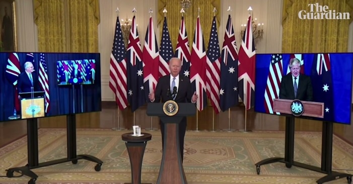 La iniciativa, denominada AUUKUS, fue presentada por el presidente estadounidense Joe Biden, el primer ministro británico Boris Johnson y el primer ministro australiano Scott Morrison. Lo enmarcaron como el siguiente paso importante en una asociación de larga data, informó The Guardian.