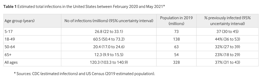 Cuando comenzó el lanzamiento de la vacuna a mediados de diciembre de 2020, más de una cuarta parte de los estadounidenses, 91 millones, habían sido infectados con el SARS-CoV-2, según una estimación de los Centros para el Control y la Prevención de Enfermedades (CDC).Hasta este mayo, esa proporción había aumentado a más de un tercio de la población, incluido el 44% de los adultos de 18 a 59 años (cuadro 1).