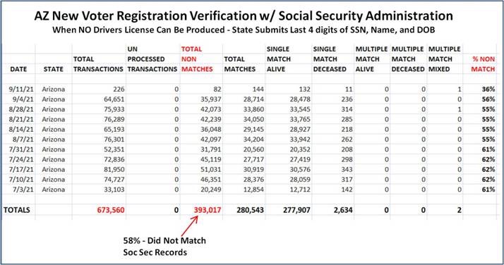 En las últimas 10 semanas, Arizona ha verificado las credenciales de registro de votantes ante la Administración del Seguro Social (SSA) en 673.560 solicitantes.