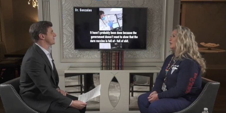En uno de los vídeos, el Dr. Se escuchó a María González decir «el gobierno no quiere demostrar que la vacuna esté llena de sh**».