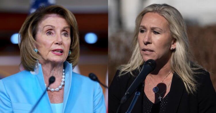 Representante Republicano de Georgia Marjorie Taylor Greene se dirigió a la presidenta de la Cámara de Representantes Nancy Pelosi durante un evento de conferencias, que se puede ver en un video publicado en Twitter esta semana.