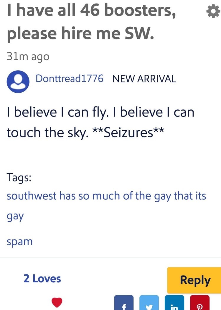 El sitio web de ayuda de Southwest Airlines está siendo invadido por trolls de Internet después de que la aerolínea cancelara miles de vuelos debido a la protesta generalizada de los empleados por el controvertido mandato de la vacuna, que actualmente se llama una enfermedad. Como informó National File: