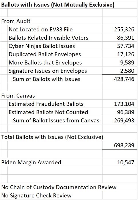 Es probable que estos problemas no se excluyan mutuamente, pero dan una muy buena indicación de que las elecciones de 2020 en Arizona estuvieron llenas de decenas de miles de papeletas inválidas.