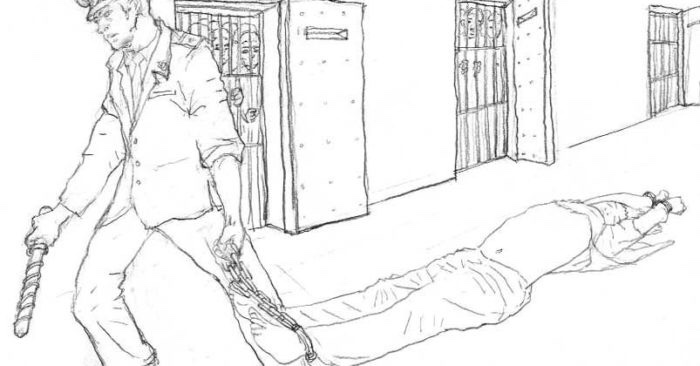“No hay cura para tus pies: sólo tienes que esperar a que te los amputen. De hecho, tendrás suerte si te amputan y acabas sólo con una discapacidad. Lo peor que te puede pasar es que no llegues a vivir. Ya te digo que el procurador tiene preparada una caja (una urna) y un papel (una esquela) para cuando des tu último aliento. Una vez que lo hagas, el informe de la autopsia saldrá a la luz y dirá que has muerto por causas naturales. La prisión no tendrá nada que ver. Nadie tiene la culpa y nadie será responsable. Tu mujer y tu hijo vendrán a recoger la caja, y tu padre y tu madre llorarán durante algún tiempo”.