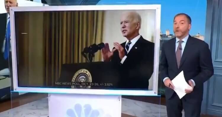 Informando sobre los últimos números de la encuesta, el presentador Chuck Todd dijo a los espectadores durante una emisión en «Meet the Press» de NBC: «Tenemos una nueva encuesta de NBC News que está llena de algunas noticias aterradoras para los demócratas. El mensaje demasiado arqueado: los estadounidenses han perdido su confianza en el presidente Biden y su optimismo por el país».