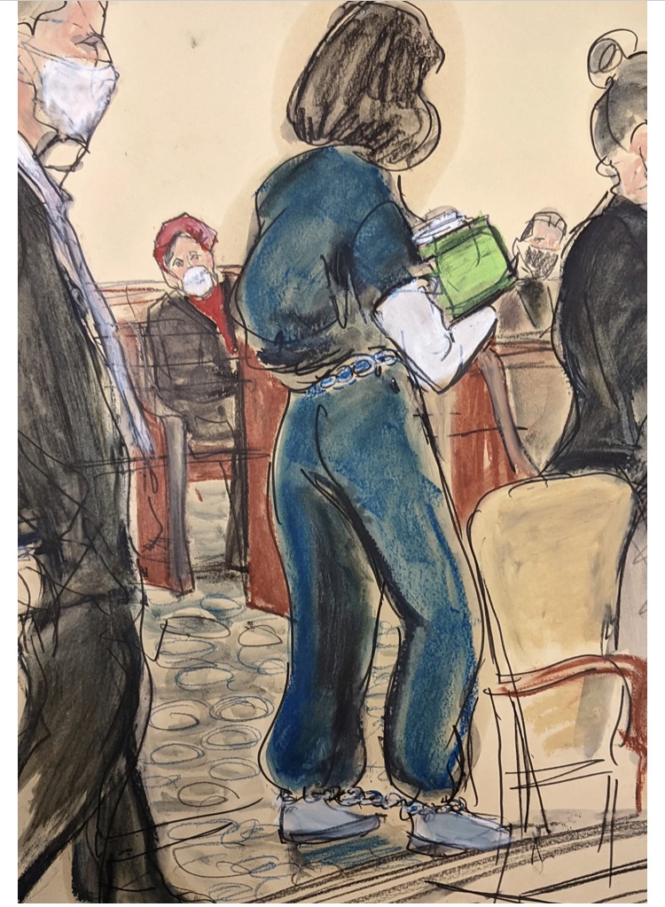 Maxwell compareció en el tribunal federal de Manhattan con un uniforme azul de prisión y una máscara blanca para la audiencia de mociones finales antes de que su juicio comience el 1 de noviembre. 29.