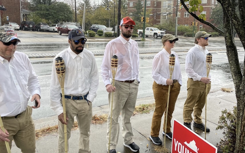 En lo que rápidamente se convirtió en un truco político que salió mal, los estrategas demócratas han sido acusados en las redes sociales de hacerse pasar por supremacistas blancos mientras estaban al lado del autobús de campaña del republicano de Virginia Glenn Youngkin.