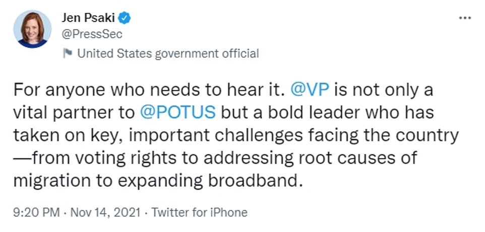 El domingo por la noche, el secretario de prensa de la Casa Blanca, Jenn Psaki, pareció responder al informe de CNN con un tuit furioso insistiendo en que Harris es un «socio vital» y «un líder audaz que ha asumido los desafíos clave e importantes que enfrenta el país, desde el derecho al voto hasta abordar las causas profundas de la migración y la expansión de la banda ancha».