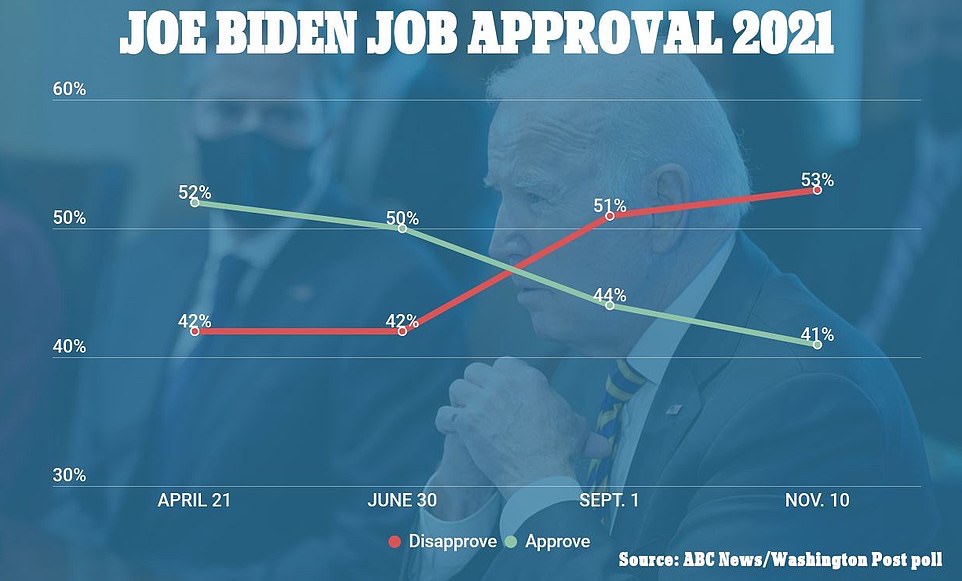 La rápida caída se produce en medio de una serie de fracasos relacionados principalmente con la economía, incluida una alta tasa de inflación de 31 años, un alto número continuo de desempleo y una crisis de la cadena de suministro justo a tiempo para la temporada navideña.