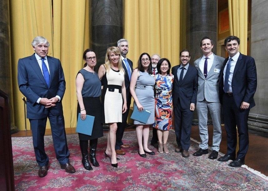 Ganadores del Premio Pulitzer 2018 del New York Times y Washington Post por su engaño de colusión Trump-Rusia de basura – Desde la izquierda: Maggie Haberman, Jo Becker, Matt Apuzzo, Rosalind Helderman, Tom Hamburger, Ellen Nakashima, Adam Entous, Greg Miller y Mark Mazetti aceptan el Premio Pulitzer 2018 de Periodismo Nacional de la Universidad de Columbia.