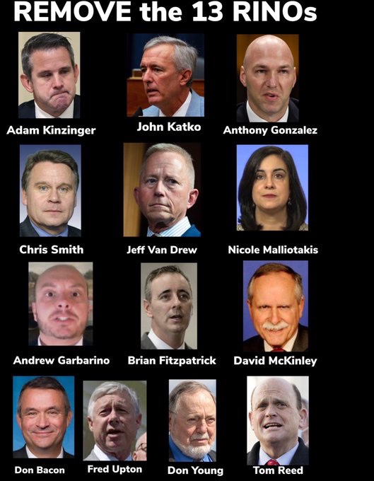 «Gonzalez, Kinzinger y Reed ya dejan de hacerlo, están fuera de política, espero que para siempre. La Warmonger Liz Cheney (desafío aceptado) está en SKIDS con un índice de aprobación del 19%. ¡Salvar a Estados Unidos comienza salvando al Partido Republicano de RINO, vendidos y perdedores conocidos! En el Senado, el «desastre de Alaska», Lisa Murkowski (desafío aceptado), debe irse. ¡No hay «casi» nadie peor!» añadió.