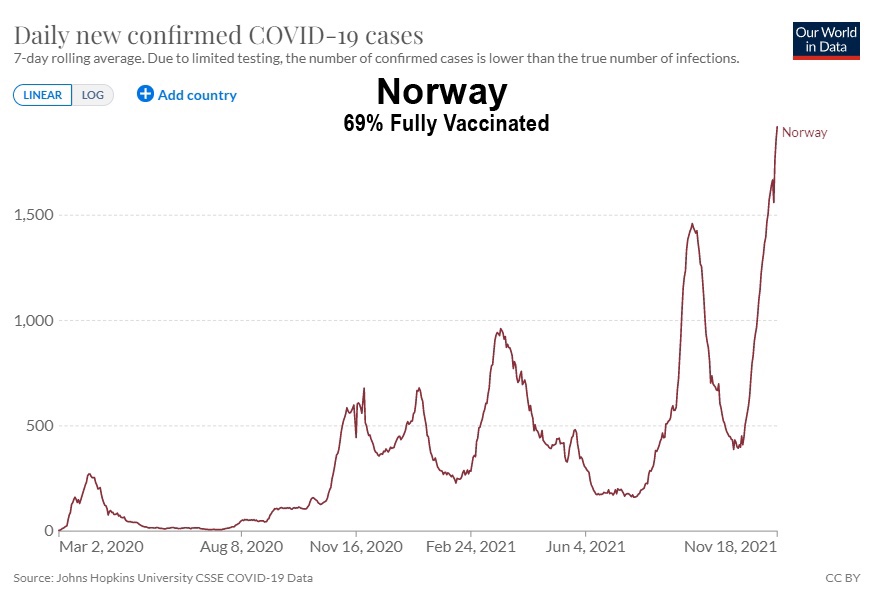 Uno de los aspectos más surrealistas de la campaña mundial para obligar al mundo a tomar estas vacunas experimentales de ARNm es el gran número de lugares donde los casos de Covid-19 han alcanzado nuevos máximos históricos después de la introducción de estas vacunas con fugas. ¿No era el objetivo de la vacunación frenar la propagación? Incluso Bill Gates dijo en julio de 2020 que el «objetivo clave» de estas vacunas es «detener la transmisión» para «recerrar los niveles de inmunidad para que casi no se produzca ninguna infección». La protección contra la infección y la transmisión siempre fue el objetivo de otras vacunas como la poliomielitis, el sarampión y las paperas. Así que tomemos un momento para explorar cómo estas vacunas contra el covid están deteniendo la propagación, comenzando con los países escandinavos:
