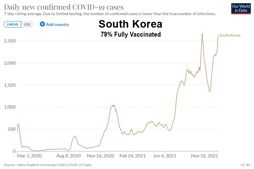 Como pueden ver, a pesar de las campañas de vacunación masiva, los mandatos de máscaras y los pasaportes de vacunas que se extienden en muchas naciones europeas, los casos están ahora en sus niveles más altos hasta ahora, y es solo el comienzo de la temporada de gripe invernal. Este fenómeno no es exclusivo de Europa y también ha tenido lugar en Asia:
