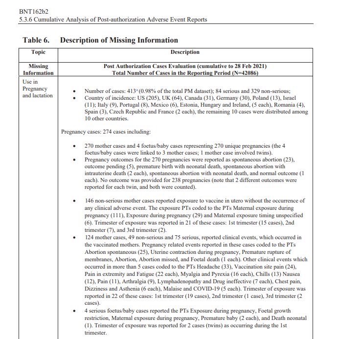 La FDA se vio obligada legalmente recientemente a publicar un lote de documentos relacionados con su Autorización de Uso de Emergencia de la «vacuna» Pfizer-BioNTech. Las primeras 91 páginas de más de 329.000 páginas que la FDA planea publicar en los próximos 55 años son reveladoras. En particular, hay una sección sobre madres embarazadas en la sección del reportaje de Eventos Adversos: