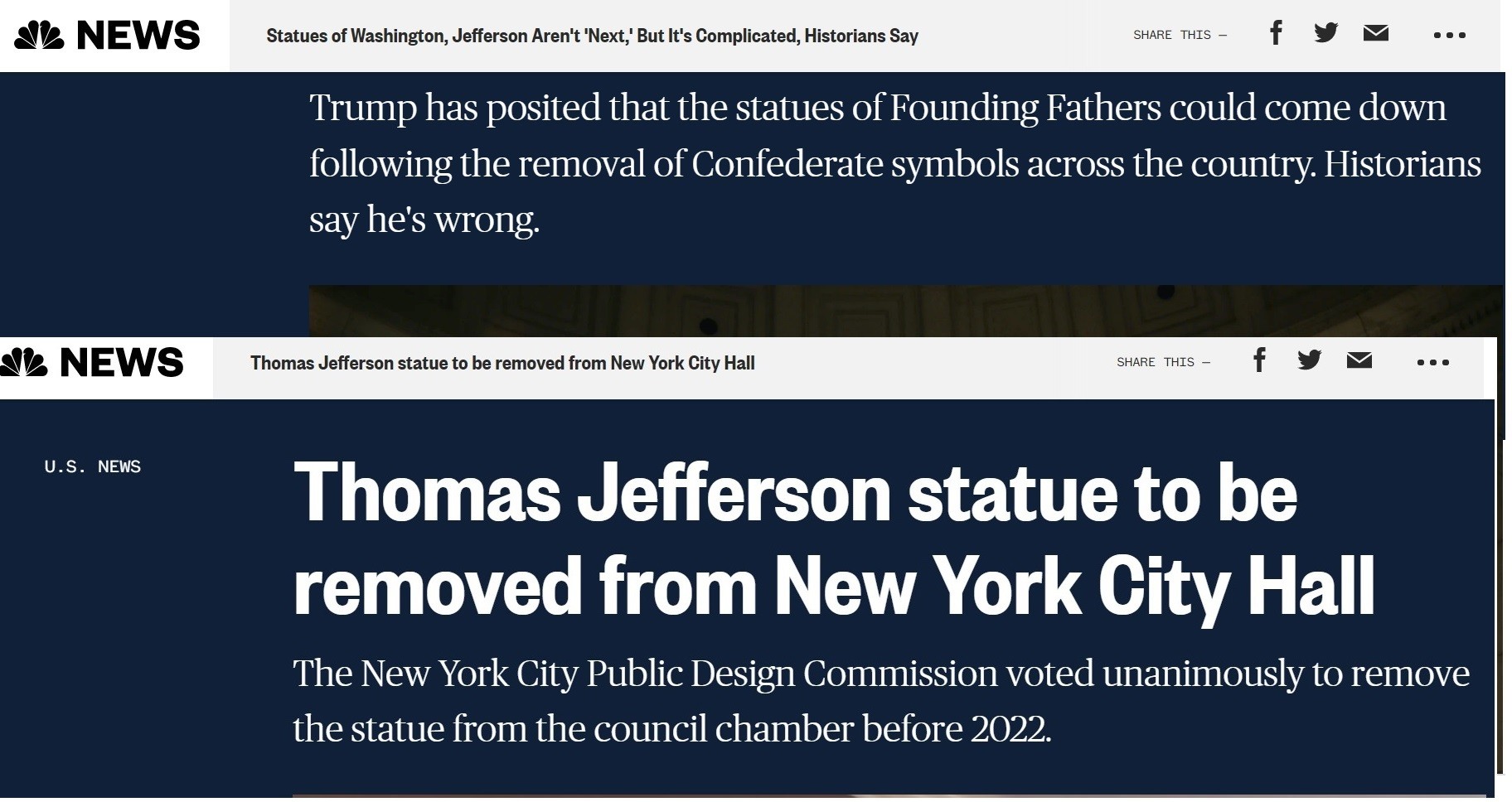«Trump ha postulado que las estatuas de los Padres Fundadores podrían caer después de la eliminación de los símbolos confederados en todo el país. Los historiadores dicen que está equivocado», escribieron los mentirosos de extrema izquierda en NBC News en 2017.