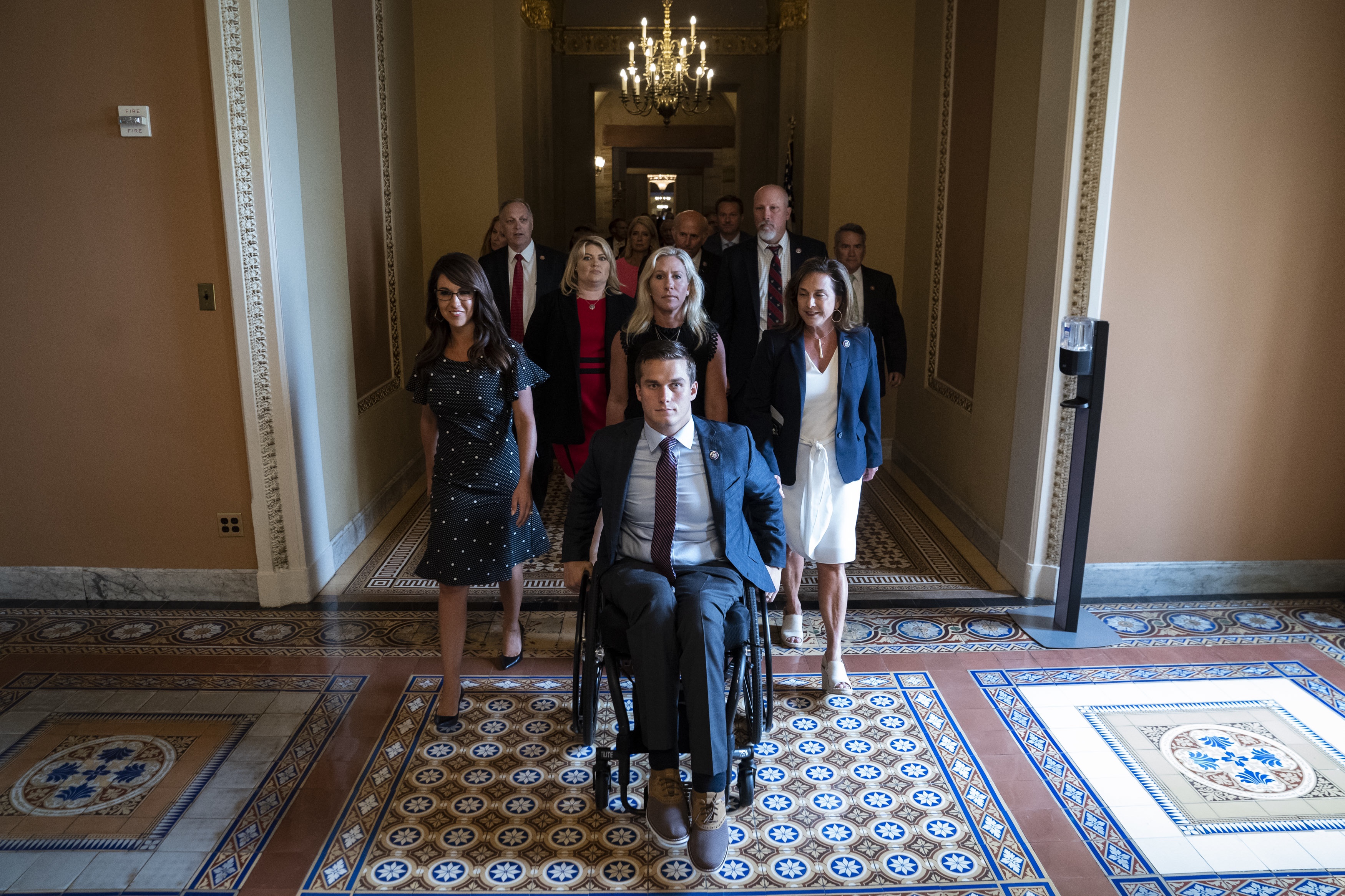 Para los republicanos de la Cámara de Representantes, esto significa que los miembros que se han asociado con supremacistas blancos, han utilizado retórica política violenta, difundido las falsas afirmaciones de Trump sobre las elecciones y han comparado las restricciones de salud pública pandémicas con el trato de los nazis a los judíos se están convirtiendo en una parte más importante de la cara pública del partido.
