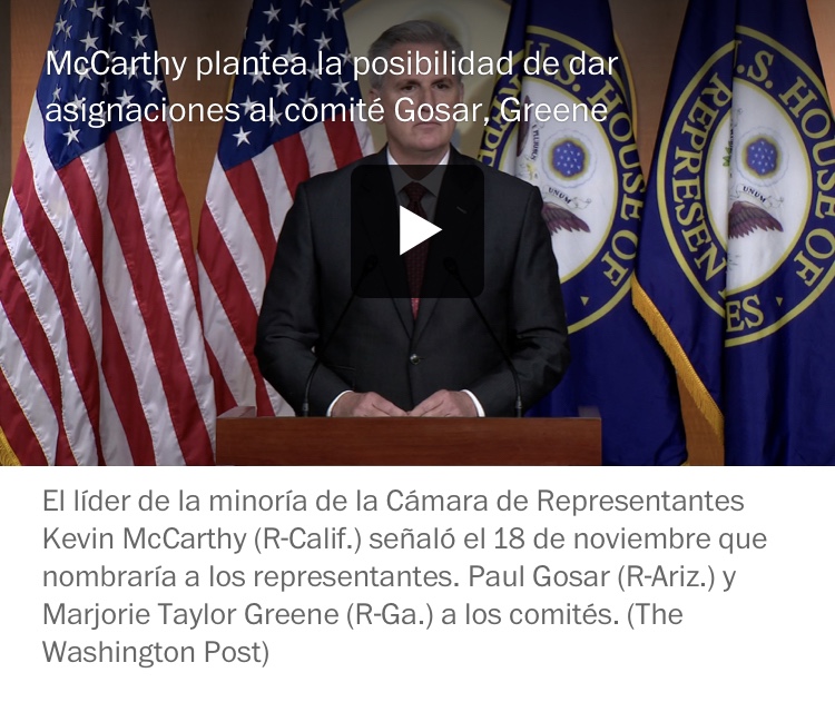 En lugar de pasar del debate sobre el comportamiento de Gosar, McCarthy dijo a los periodistas que no solo restauraría las asignaciones del comité de Gosar y Greene, sino que probablemente les daría posiciones más prominentes si los republicanos ganan el control de la cámara en las elecciones de mitad de período.
