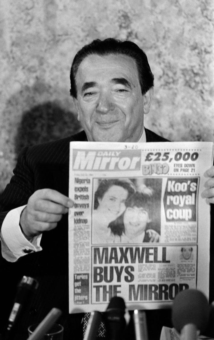 Maxwell también compró los periódicos de Mirror Group, ampliando dramáticamente su alcance y ayudándolo a competir con Murdoch, que le había superado por varios otros activos después de News of the World, incluidos The Sun (1969) y The Times and Sunday Times (1981). Más de 15 años después de su primer encuentro, Maxwell todavía albergaba resentimiento. «No va a lograrlo», predijo de su rival australiano. «Es un jugador».
