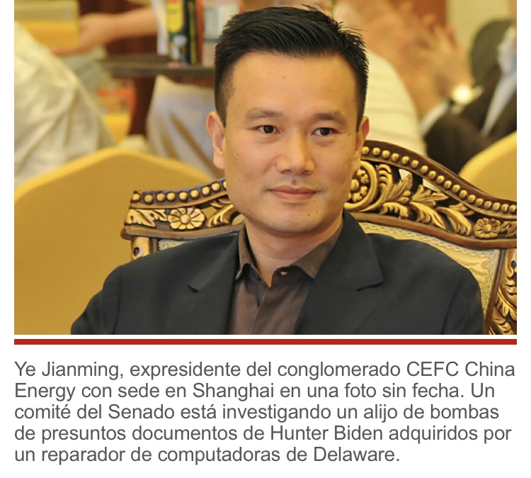 Le permite a Bobulinski entrar en la última pieza del rompecabezas en marzo de 2016: el socio chino de los Biden es CEFC, que tiene «más dinero que Dios», escribe. «Este es el brazo mayúscula de un cinturón, una carretera».