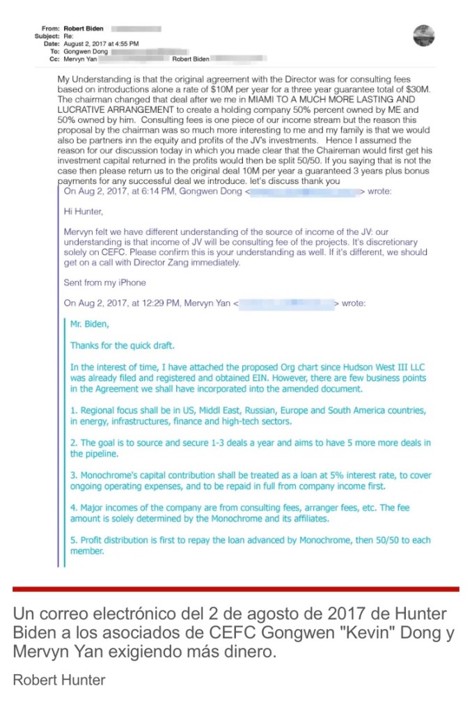 Más tarde, Bobulinski pregunta: «¿Está bien, quién está poniendo los 10 millones de dólares?